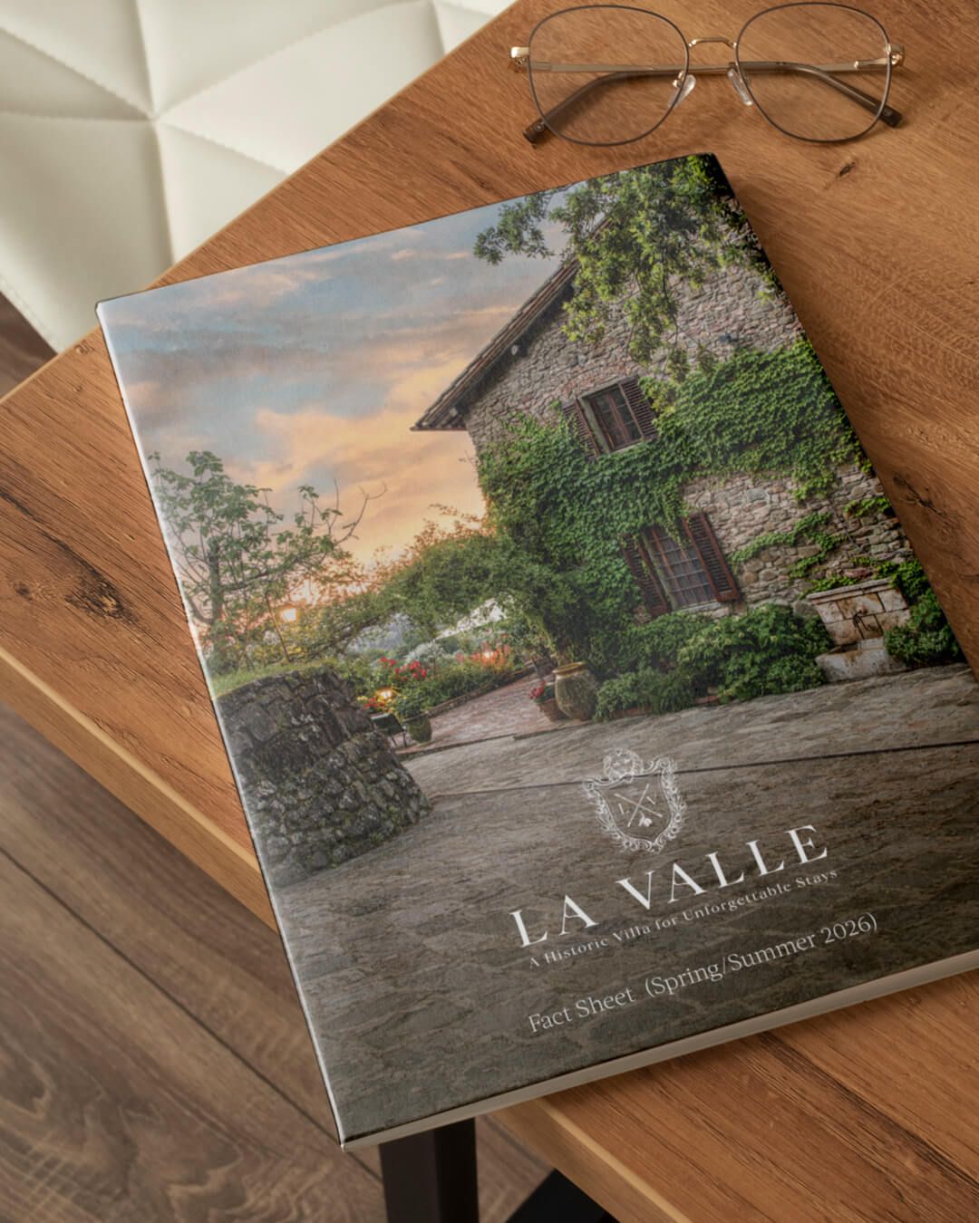 The branding book defines a complete visual world- structure, tone, and imagery, for a restored villa colonica in the Chianti landscape, with roots dating back to the 1300s.