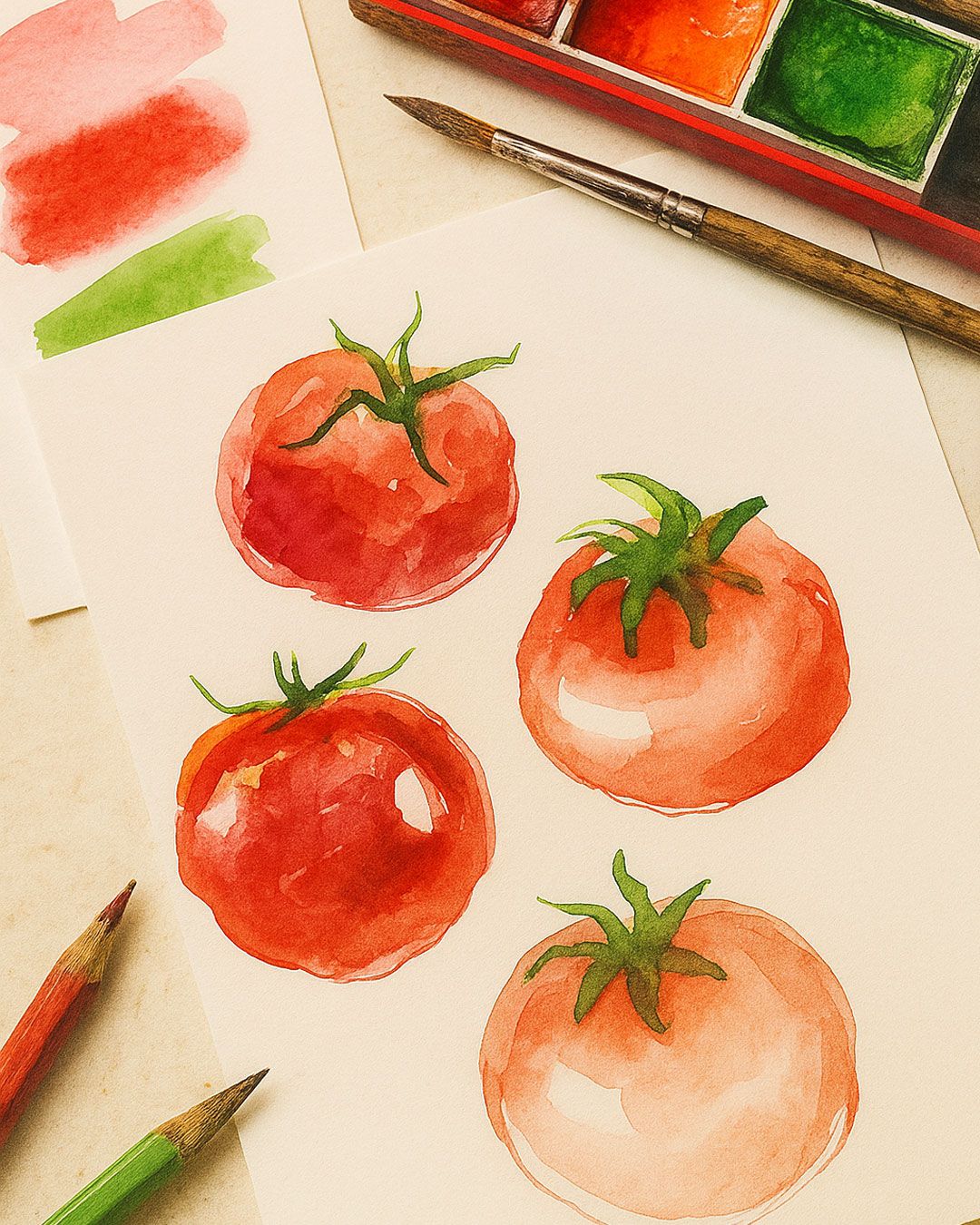 The starting point was simple: to create a plate that feels as natural as the food it carries. Inspired by the essence of Italian dining, I looked at the tomato not just as an ingredient, but as a symbol. Through hand-drawn studies and watercolor sketches, I explored its form, color, and softness, translating this into a visual language that feels both playful and refined.