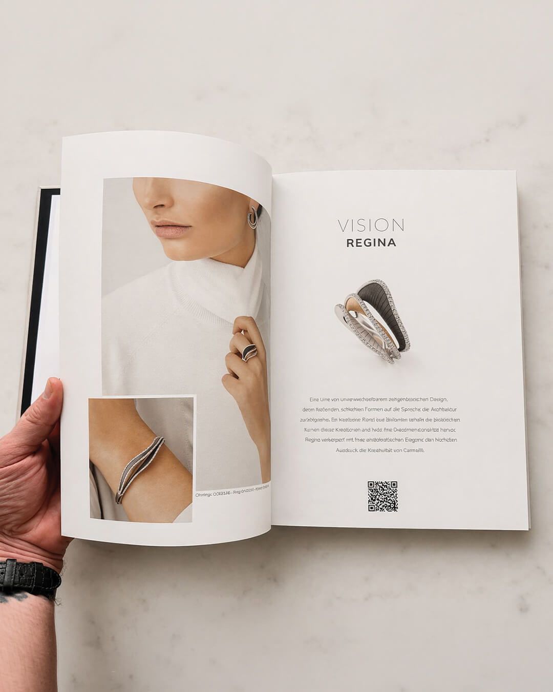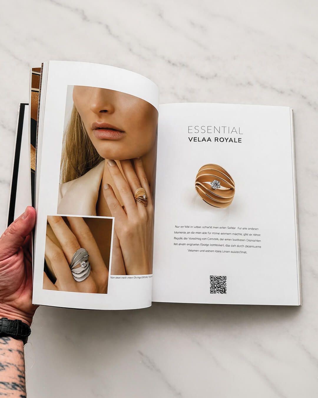 Minimal, but never empty. A quiet tension between precision and softness. A book designed not to compete with the jewellery, but to elevate it.